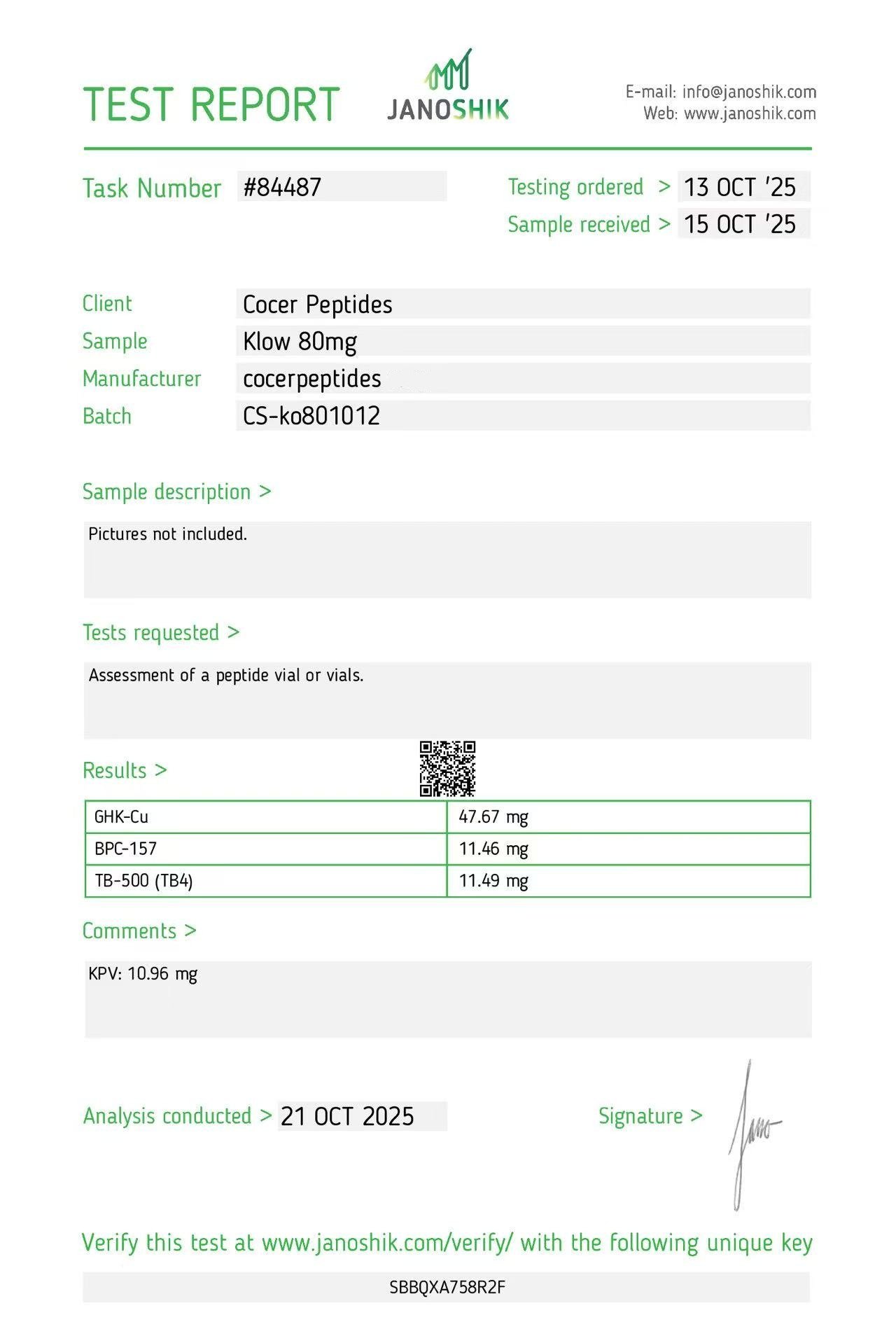 Purchase & earn 150 Pep Points!Description: KLOW Blend is a proprietary multi-component research peptide formulation supplied in lyophilized form for laboratory and analytical applications. This blend is referenced in exploratory studies examining peptide interaction models, intracellular signaling mechanisms, and controlled cellular response pathways under experimental conditions. It is provided strictly for research use by qualified professionals.