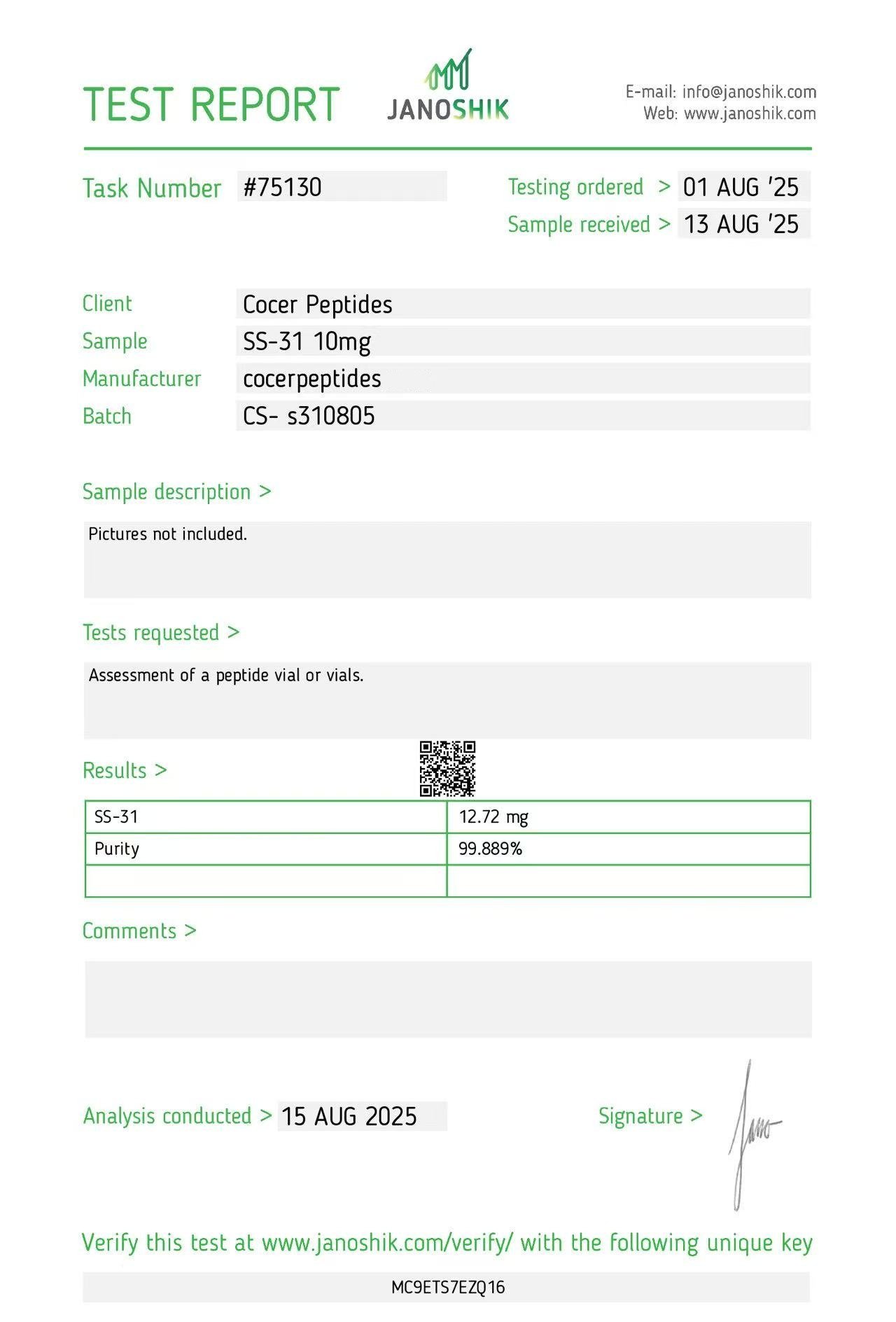Item: SS-31 – 10mg Lyophilized Research Peptide